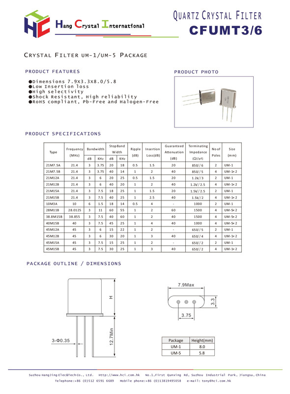 | タイプ | Crystal filter |