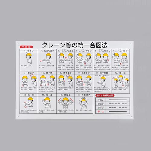 ●クレーン等の統一合図法が図解された樹脂製標識です。クレーン等の統一合図法が図解された樹脂製標識です。